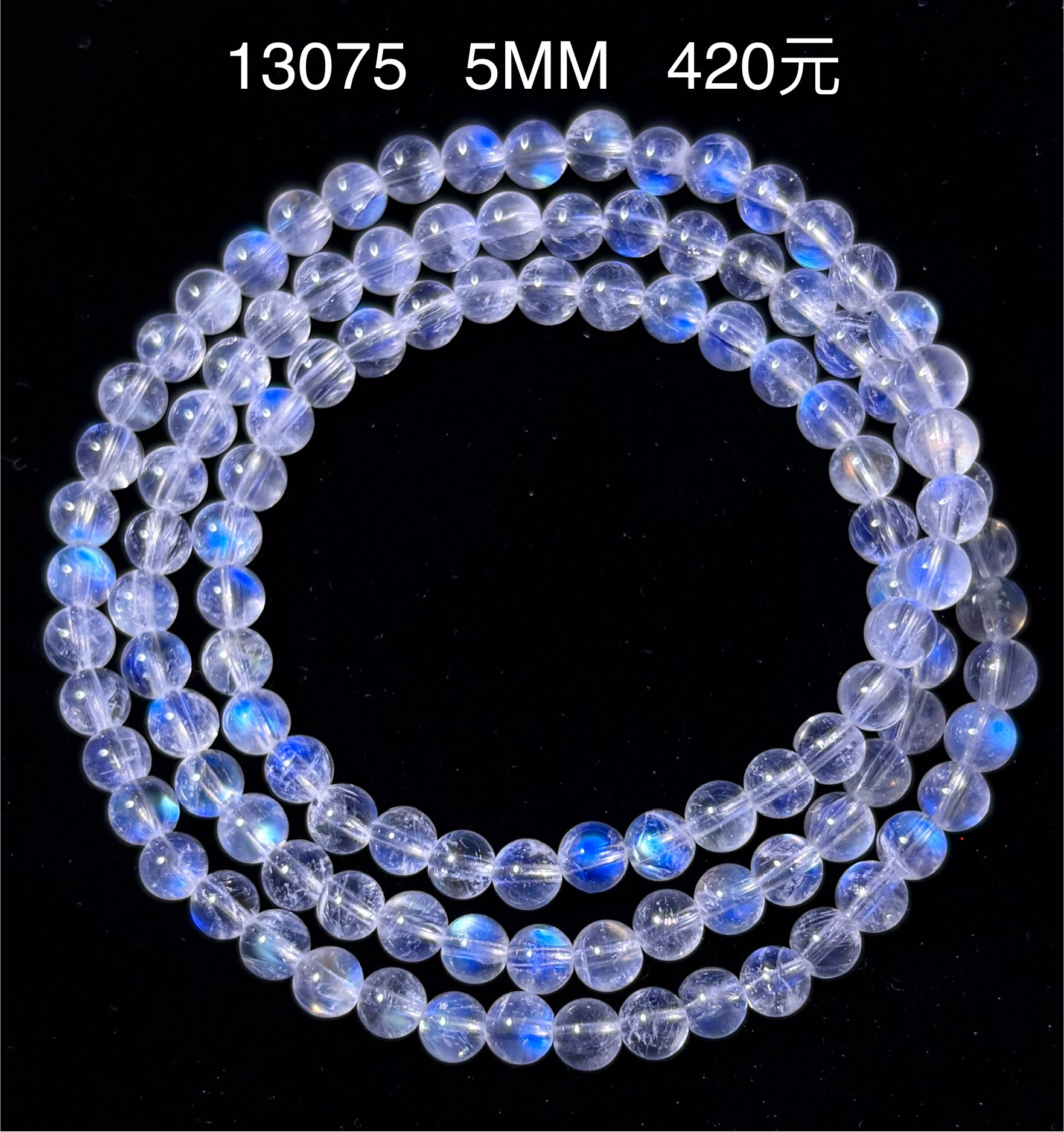 天然水晶印度蓝月光石手链玻璃体彩光3圈佛珠手串一物一图月亮石