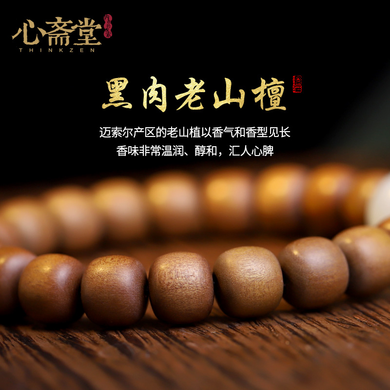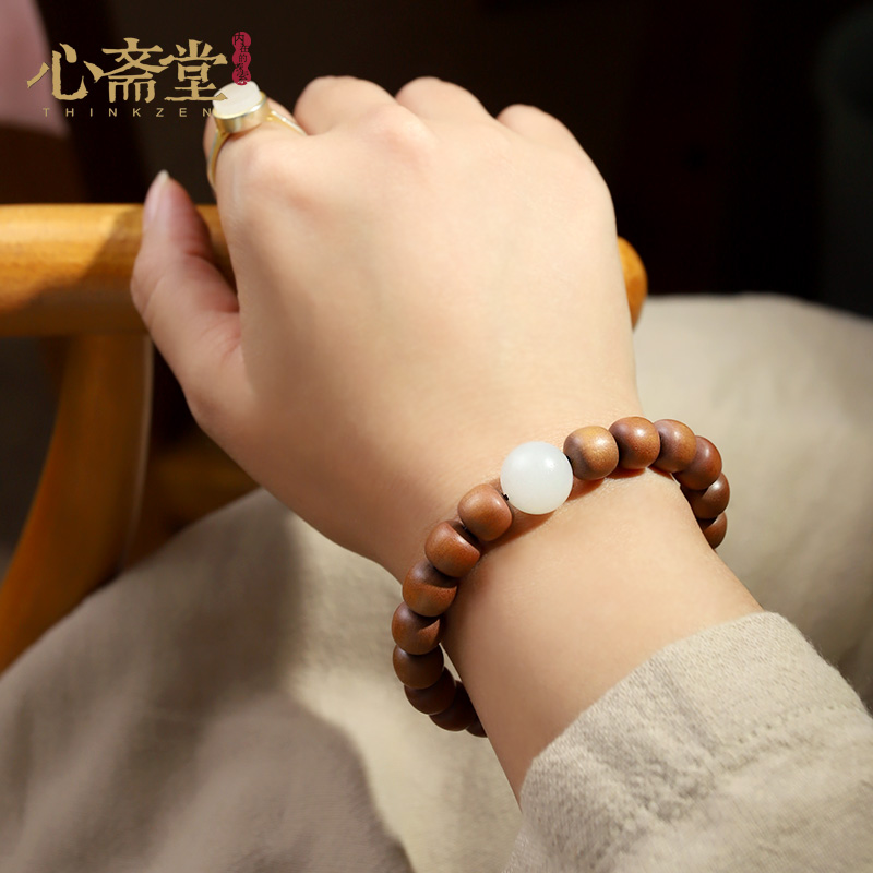 心斋堂【静霭】印度老山檀香木手串文玩民族国风和田玉手链女礼物