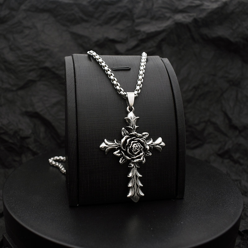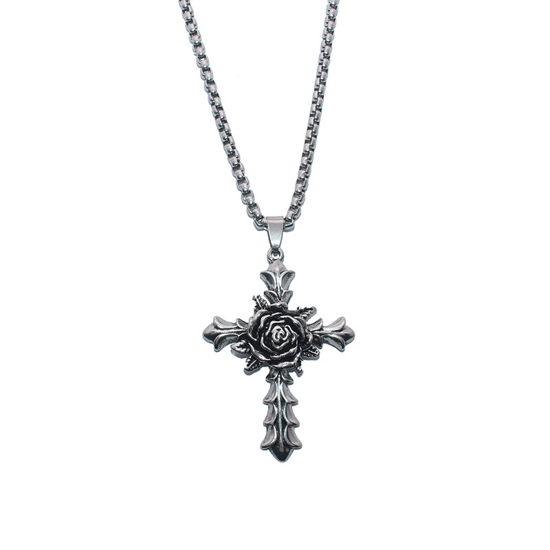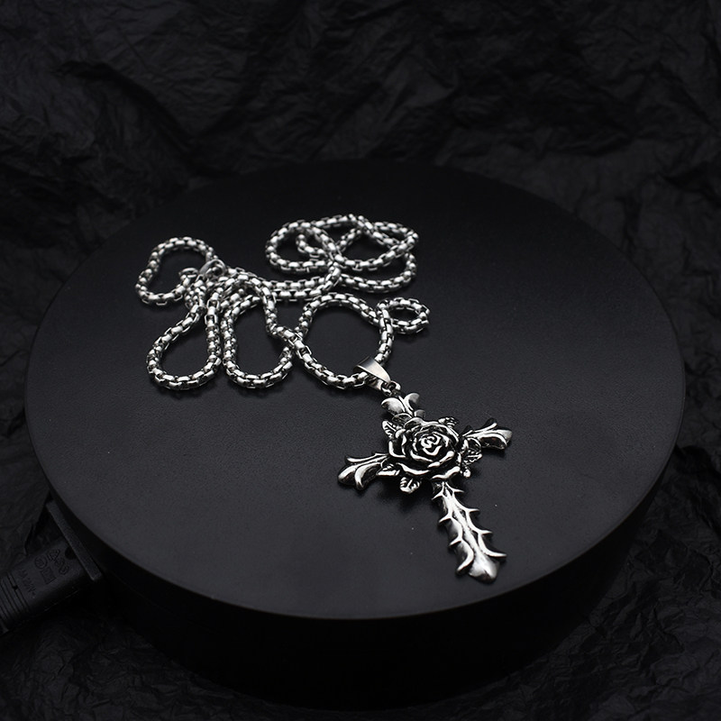 玫瑰花十字架项链男女夏季ins土酷嘻哈吊坠蹦迪情侣欧美毛衣链子