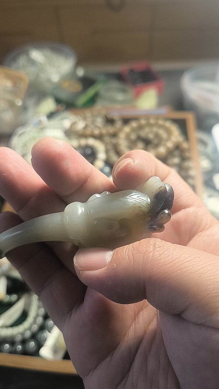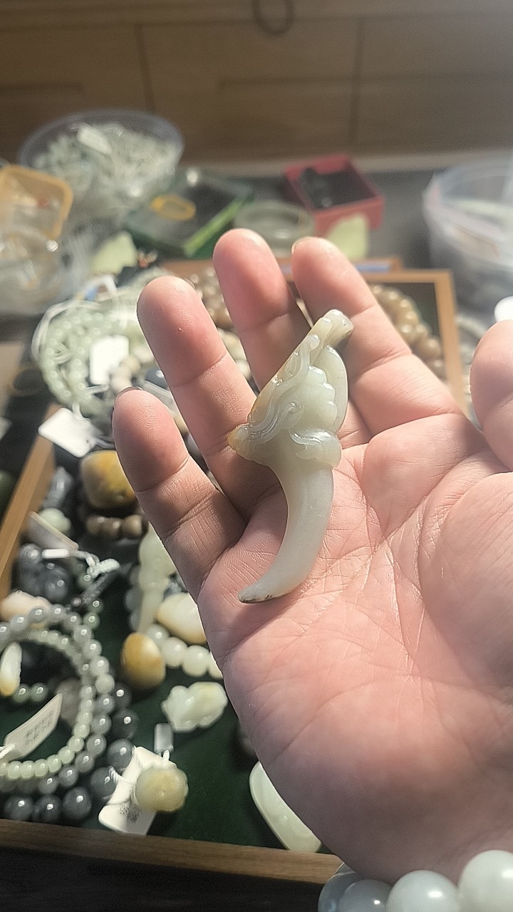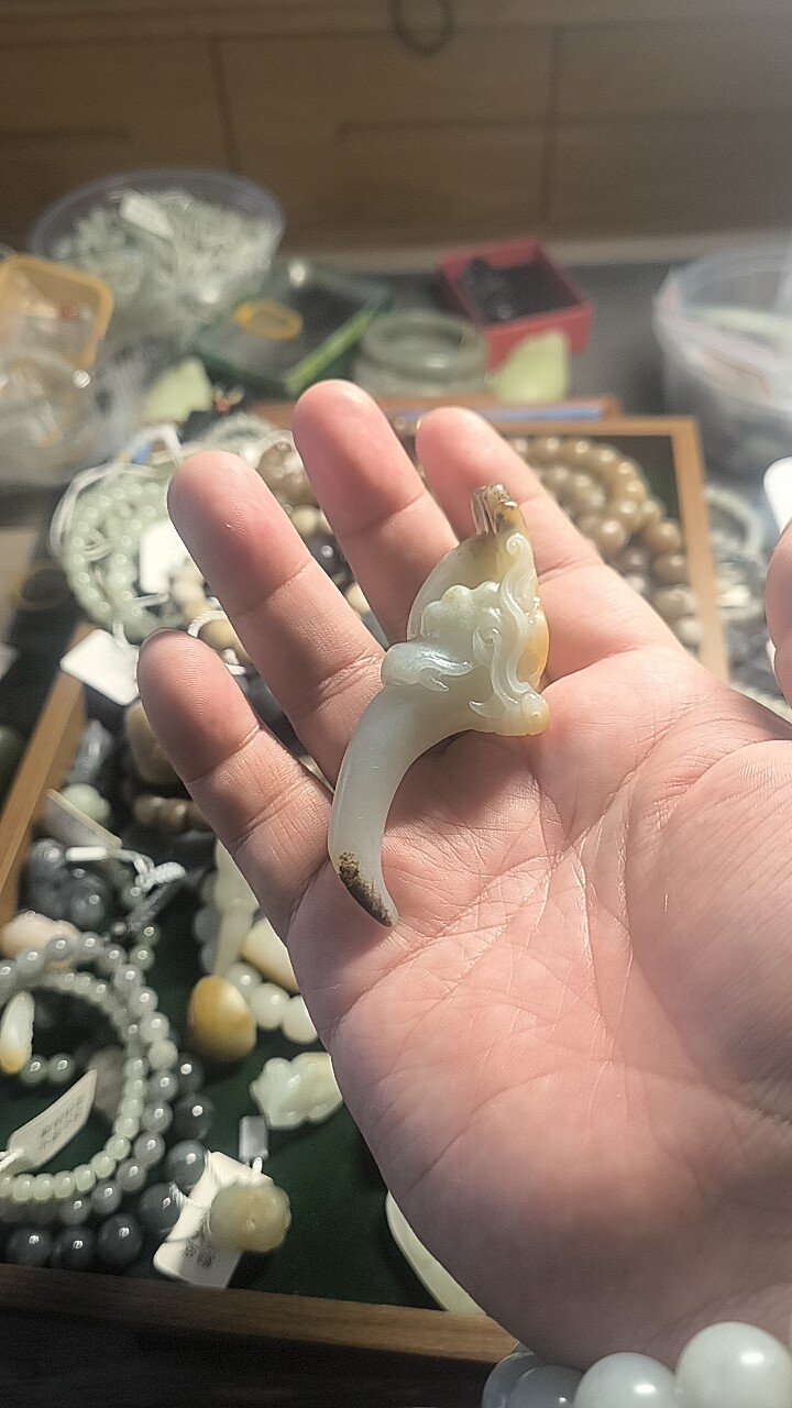 和田玉三色籽料龙牙手把件525144
