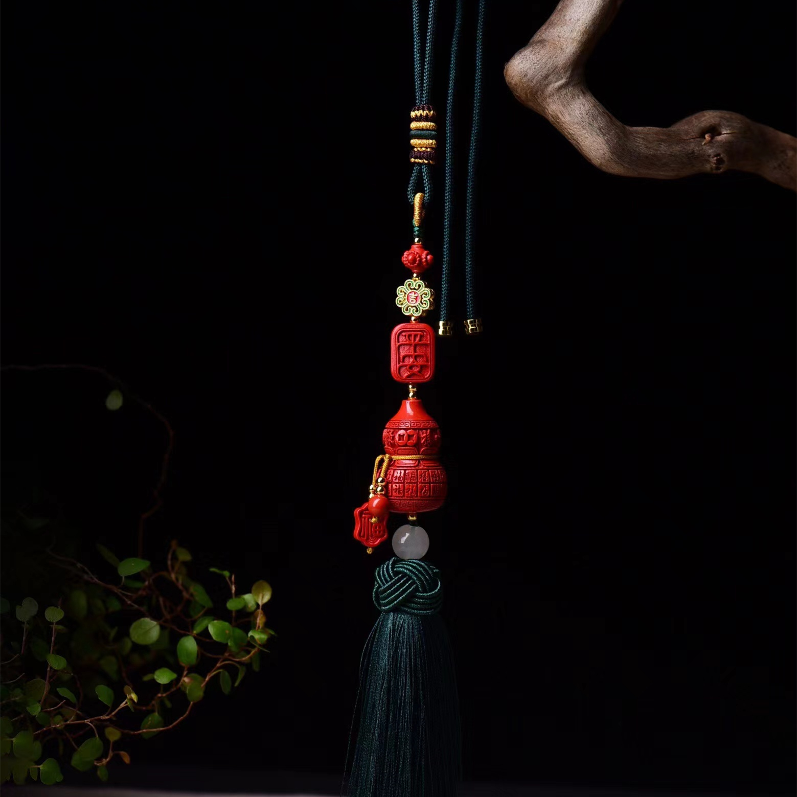 原矿高含量红砂葫芦汽车挂件男女本命年编织车载挂饰朱砂吊坠
