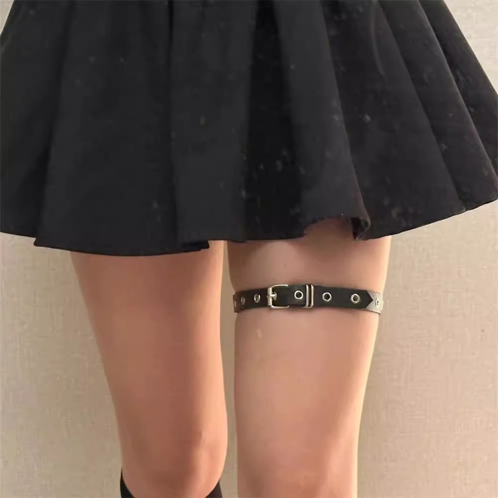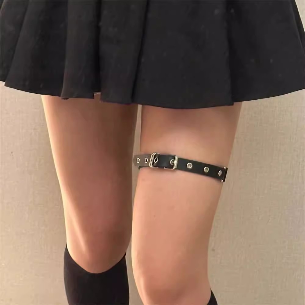 赵露思同款暗黑朋克可调节腿链女钉针扣皮带扣腿环性感腿饰辣妹