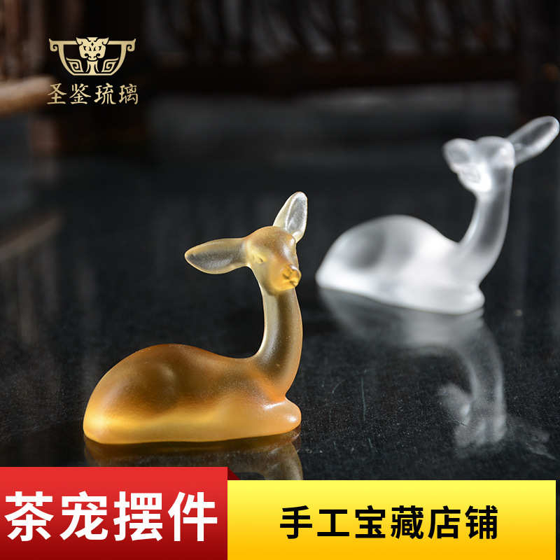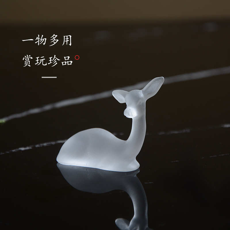 新品琉璃茶宠摆件迷你小鹿福鹿笔架茶道鹿摆件手工艺品批发