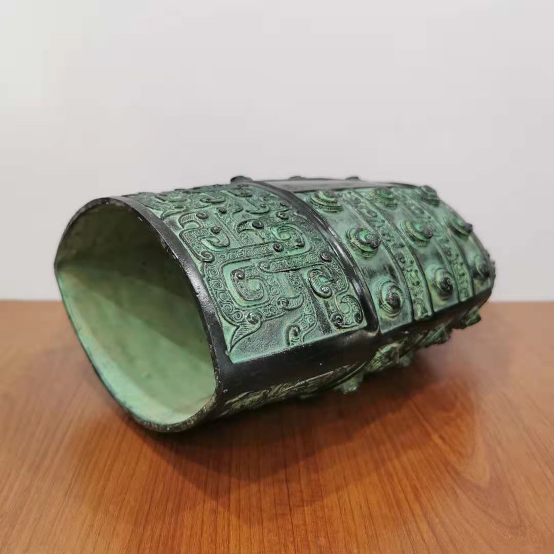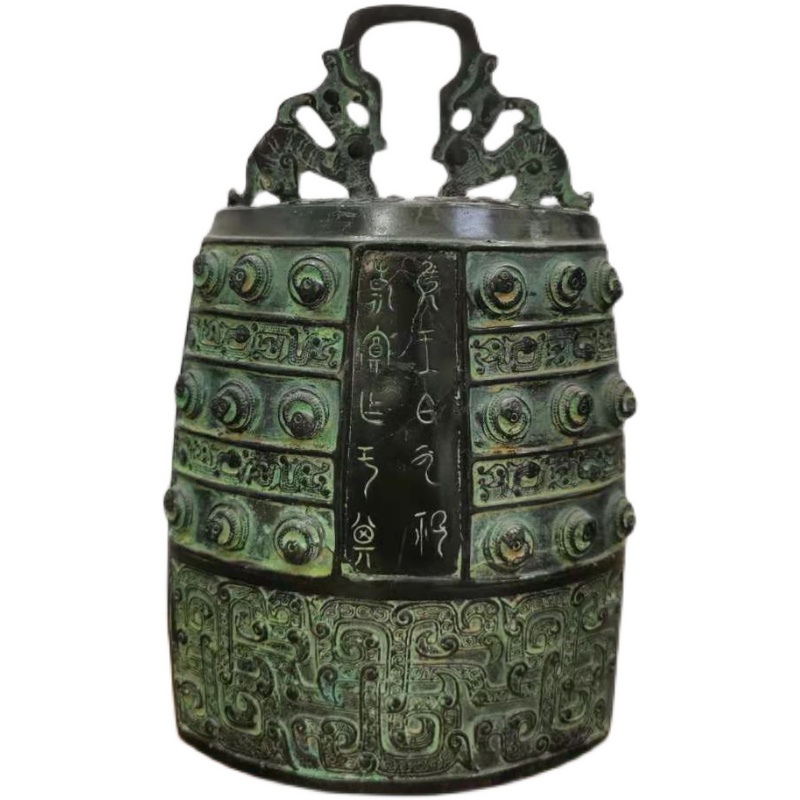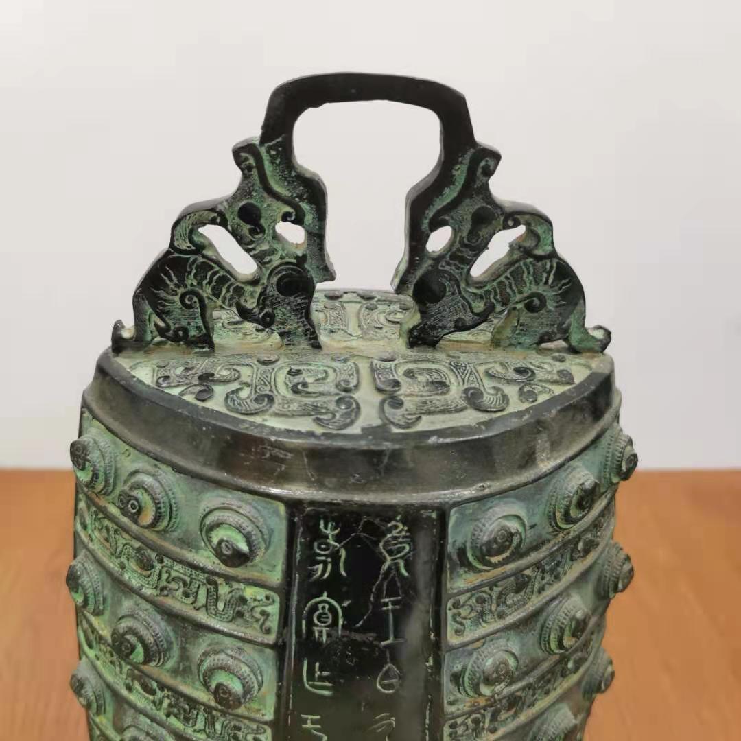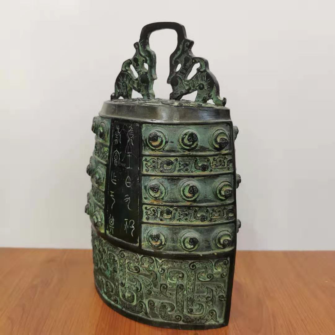 仿古青铜器风水客厅复古老摆件双龙钟镇宅古玩包老送家居装饰礼品