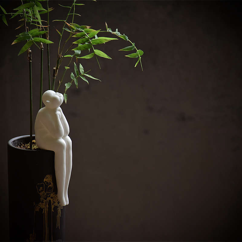 创意陶瓷人物雕塑书柜电视柜艺术摆件治愈可爱坐姿装饰小家居饰品