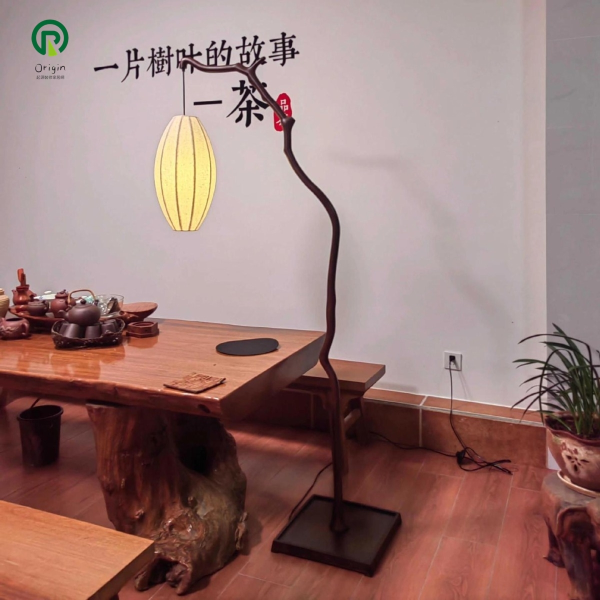 侘寂复古风树枝新中式禅意落地灯茶室书房氛围灯布艺灯笼钓鱼地灯
