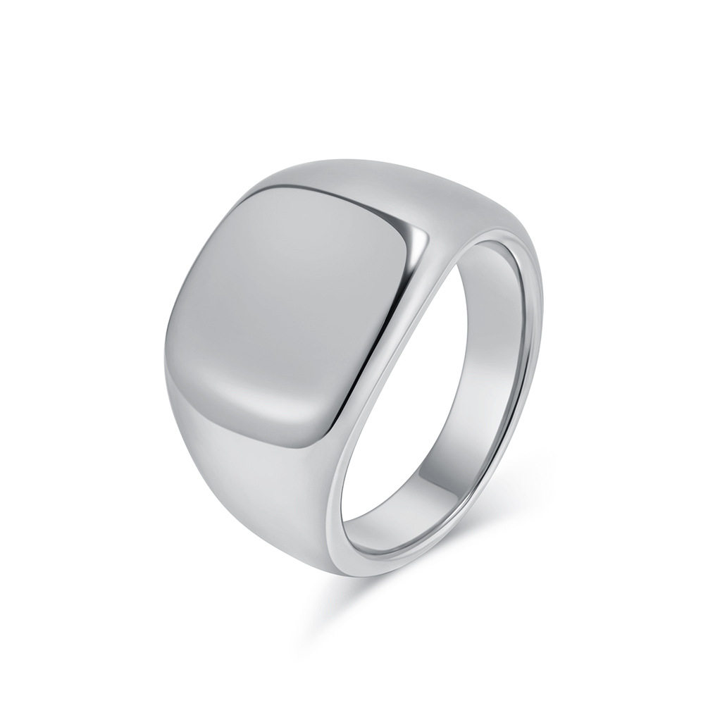 时尚钛钢戒指 简约风镜面弧形方块戒指 简约光面素戒钛钢戒指指环