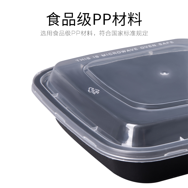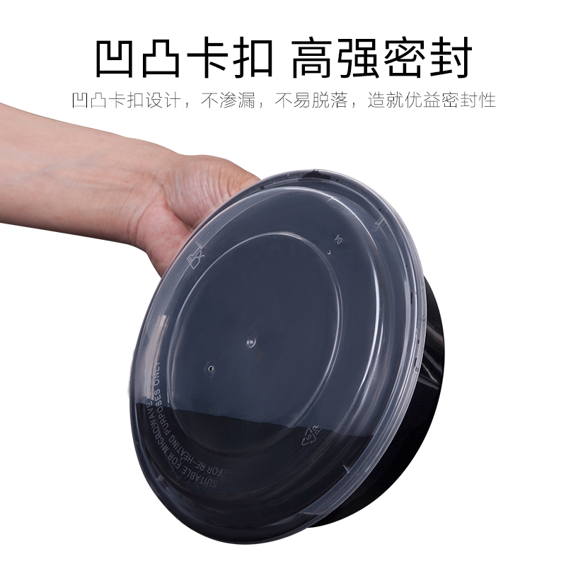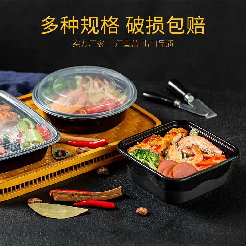 圆形美式打包盒Y350/450ml一次性餐盒黑色塑料外卖快餐便当饭盒