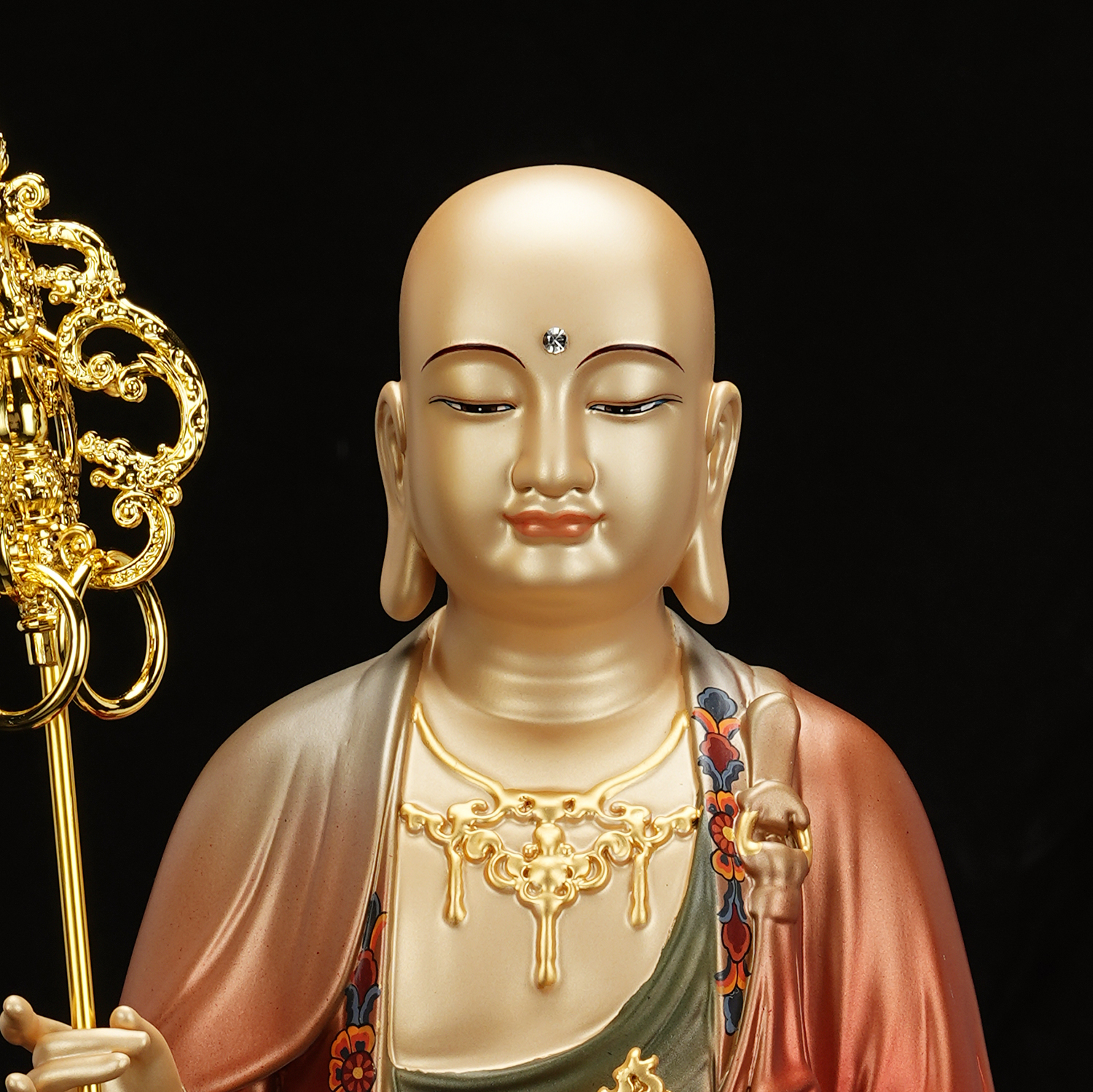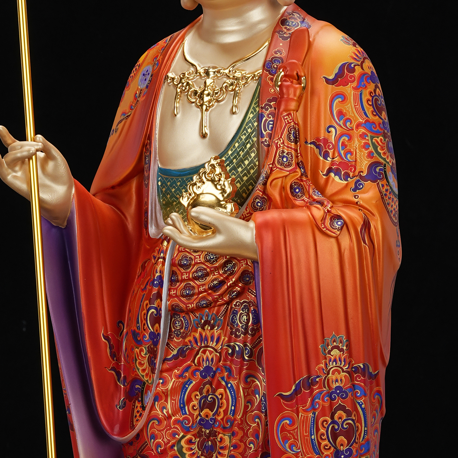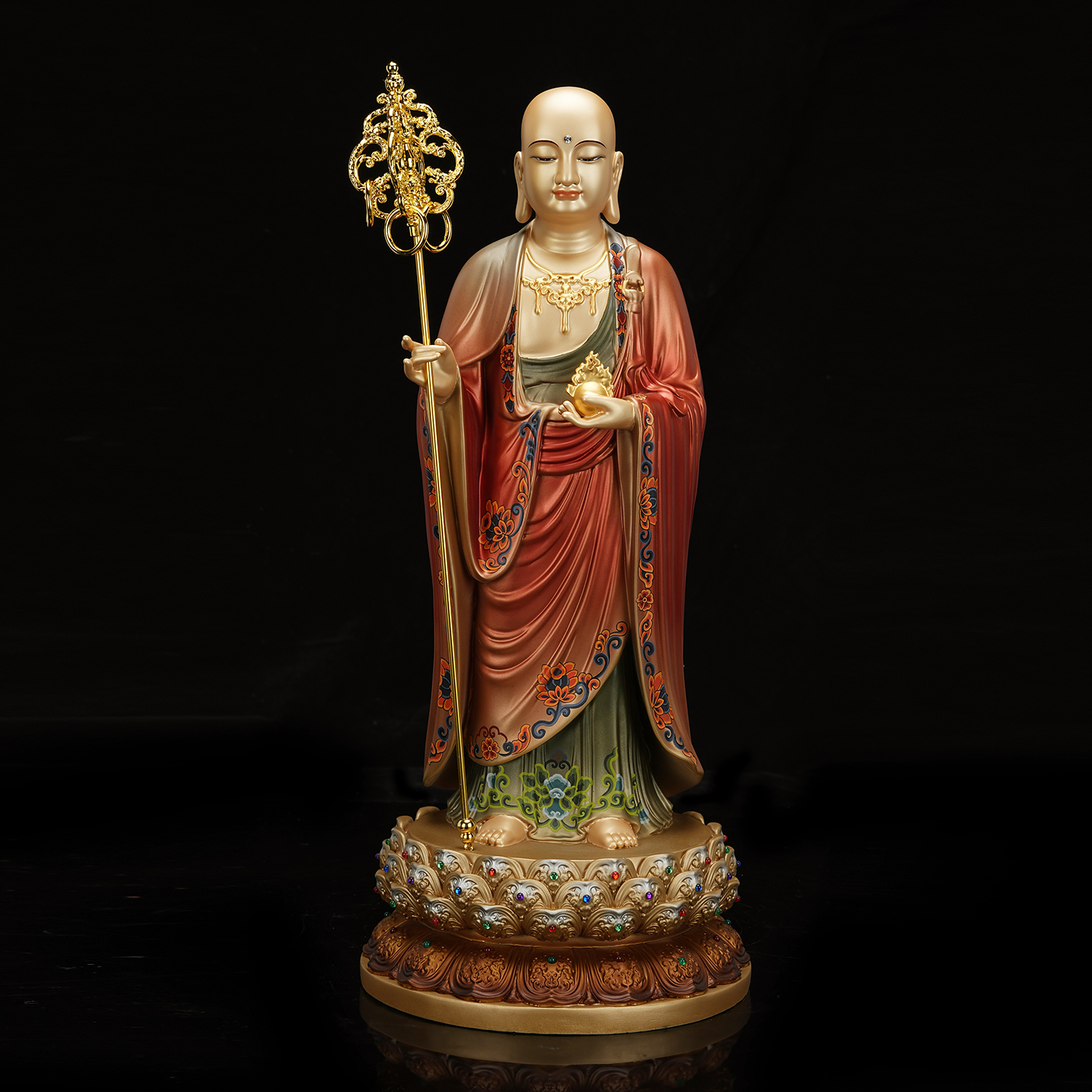 铜家居供奉地藏王菩萨像九华山佛像祝福摆件站莲贴金彩绘娑婆三圣