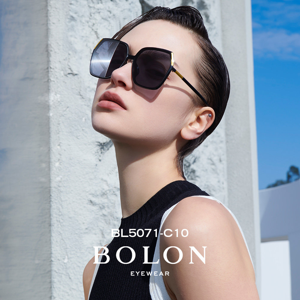 BOLON暴龙眼镜偏光太阳镜女大框圆脸显瘦白框墨镜官方正品BL5071
