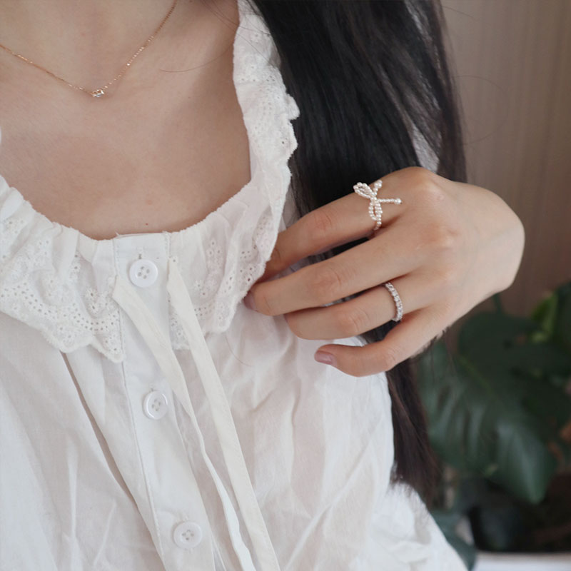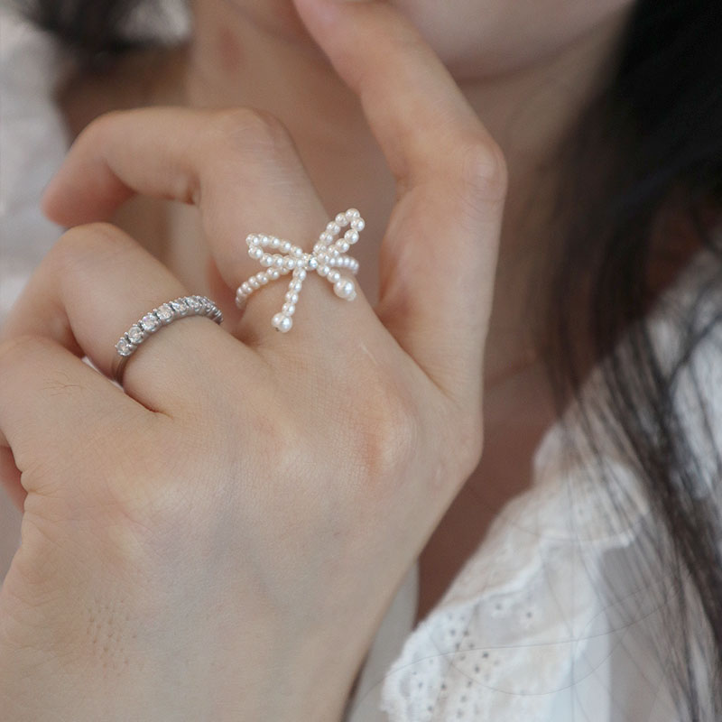 迷你小珍珠蝴蝶结戒指轻奢仙气百搭指环小众设计甜美可爱食指戒潮