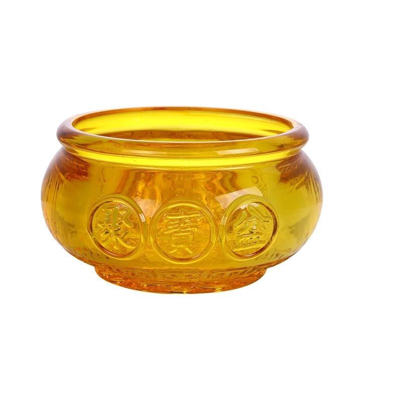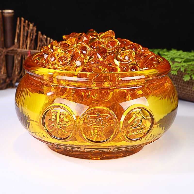 琉璃聚宝盆摆件鱼缸造景黄水晶琉璃元宝开业乔迁礼品客厅家居装饰
