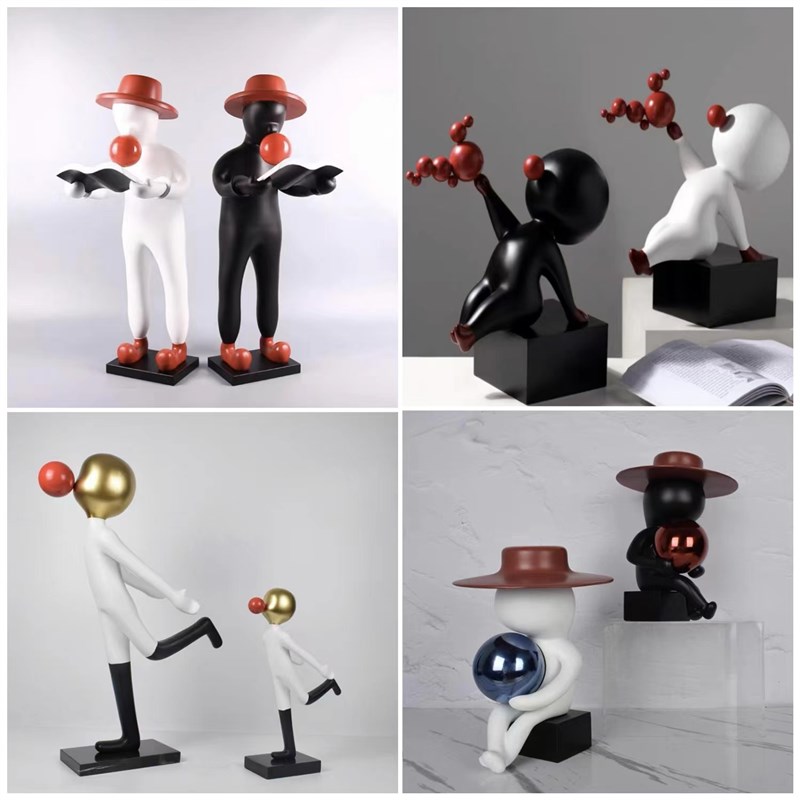 现代简约客厅电视柜书房茶几软装C样板房抽象卡通树脂人物雕塑摆