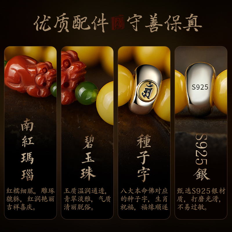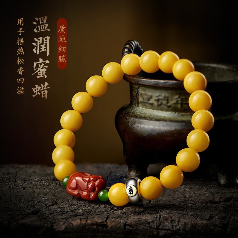 蜜蜡手串女鸡油黄琥珀满蜜南红玛瑙貔貅圆珠单圈转运珠本命佛手链
