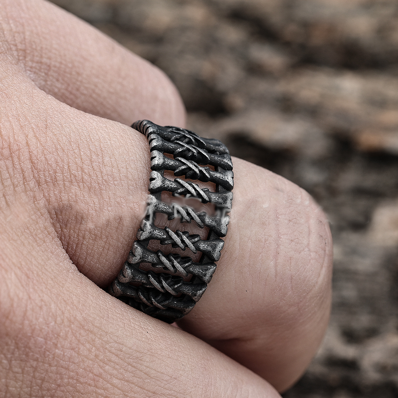 punk elements钛钢戒指戒指食指戒骨头图钉潮男戒指十字架银戒指