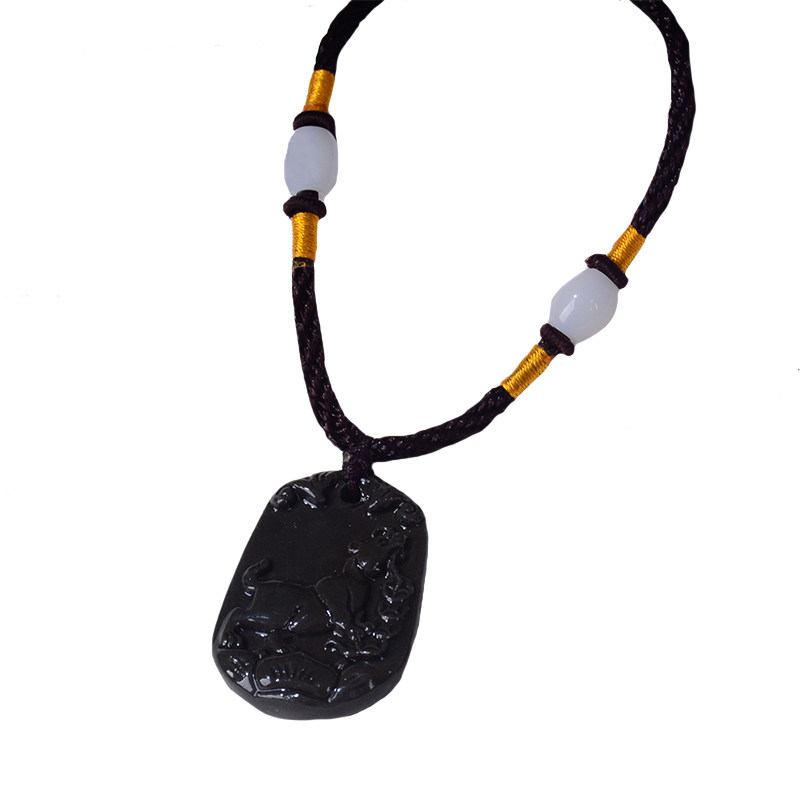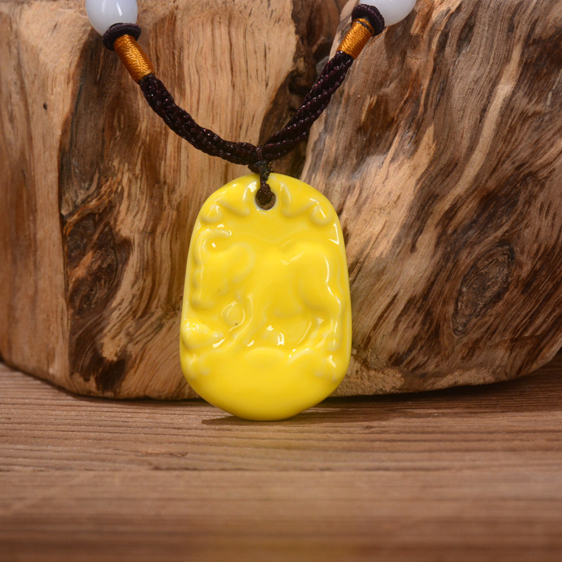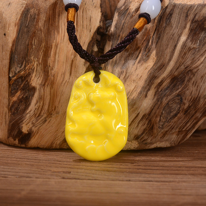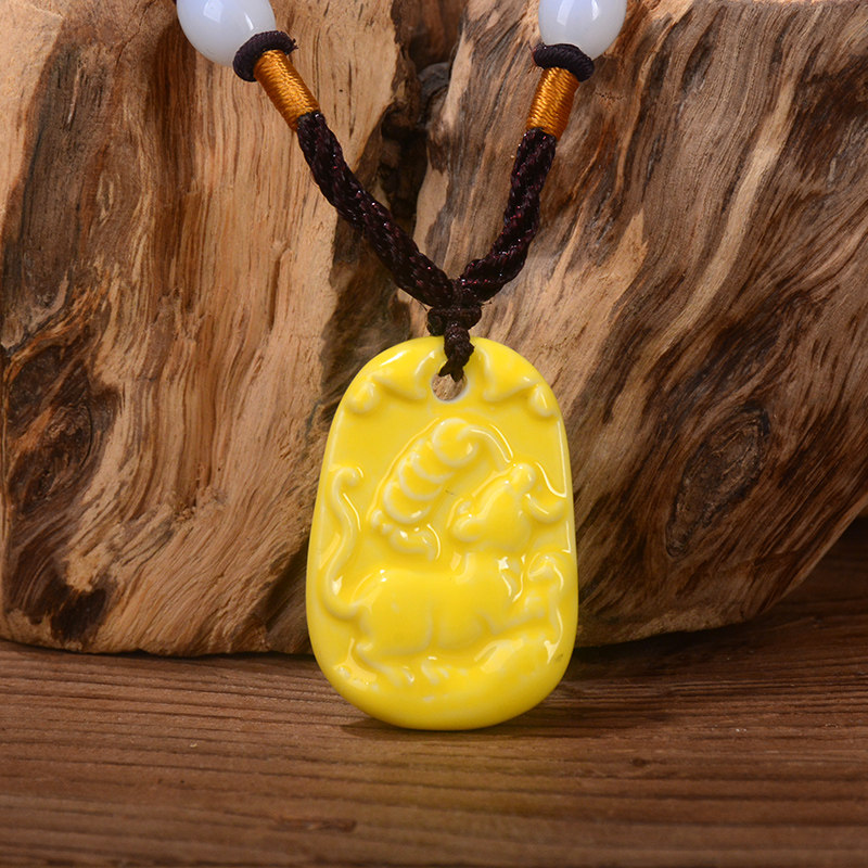 黄色陶瓷小兔子项链吊坠招财风水生肖属相开运动物可随身携带吊牌
