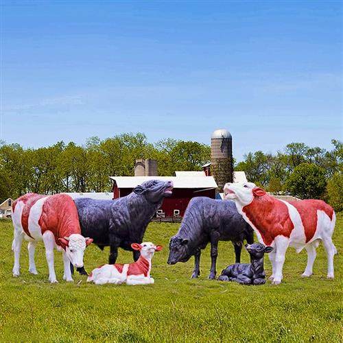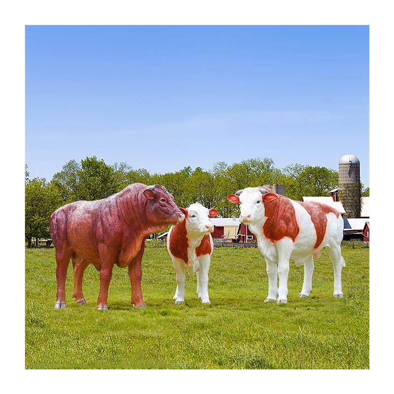 户外仿真大型黄牛玻璃钢雕塑草坪黑牛模型西门塔尔牛园林景观装饰