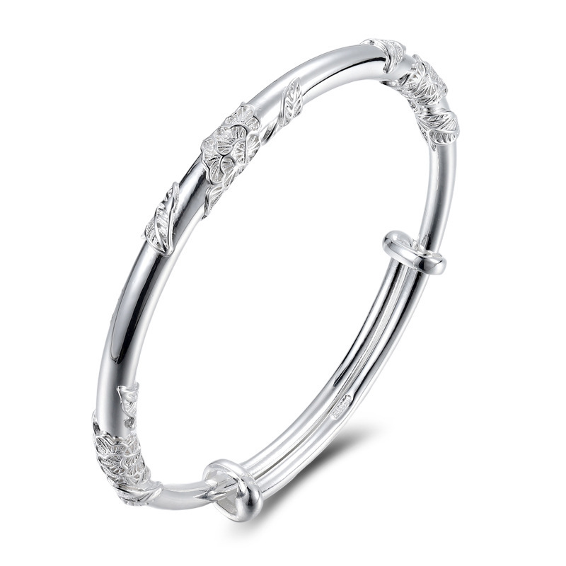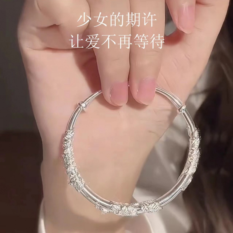 繁花正品足银999纯银手镯小众实心爆款时尚镯子情人节送女友礼物