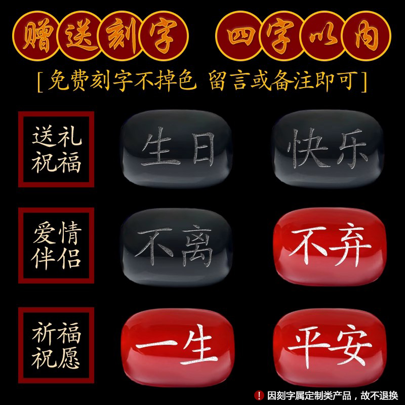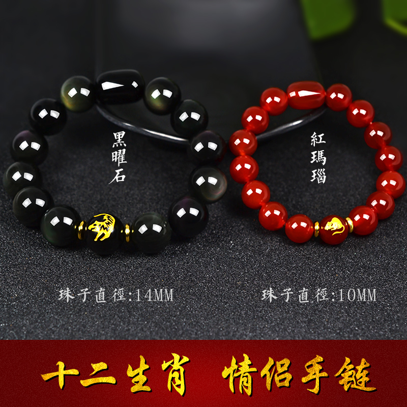 天然黑曜石十二生肖手链男红玛瑙珠串女情侣本命蛇年属相刻字饰品