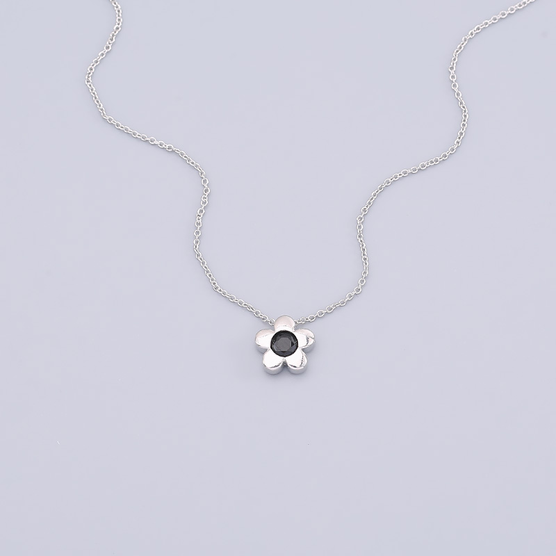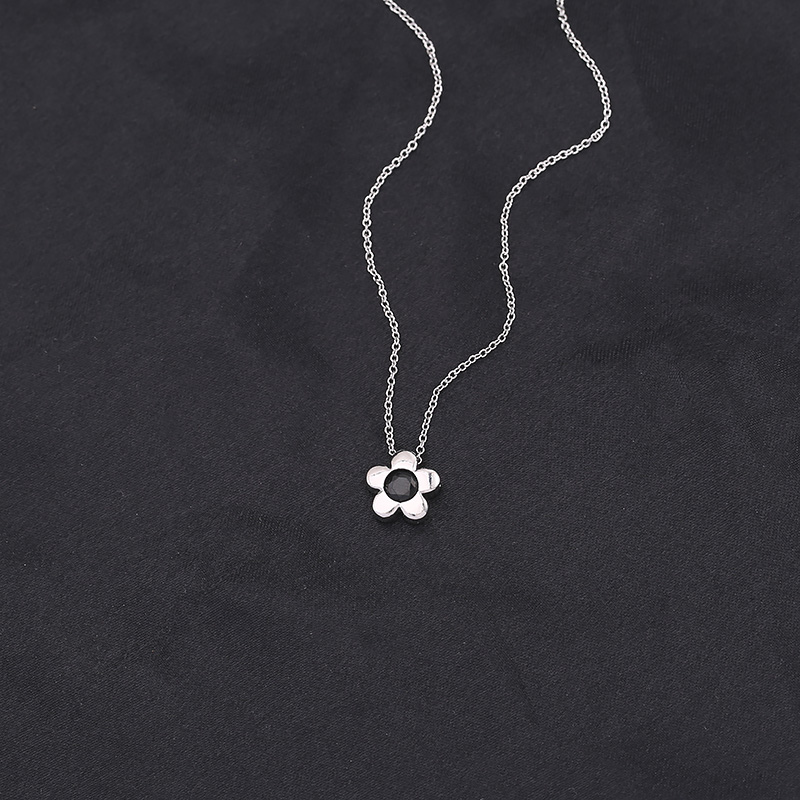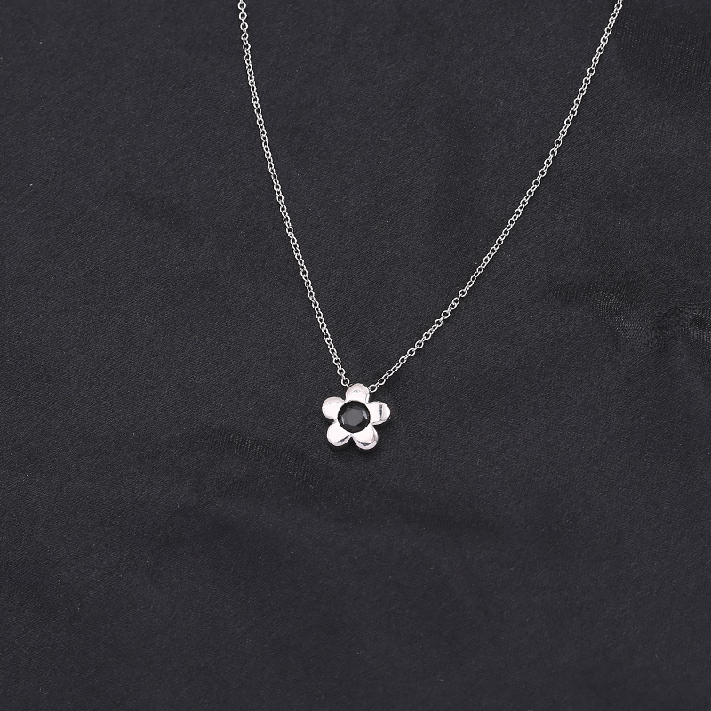 s925纯银黑色单钻小花项链女简约小众五瓣花朵锁骨链气质新款潮