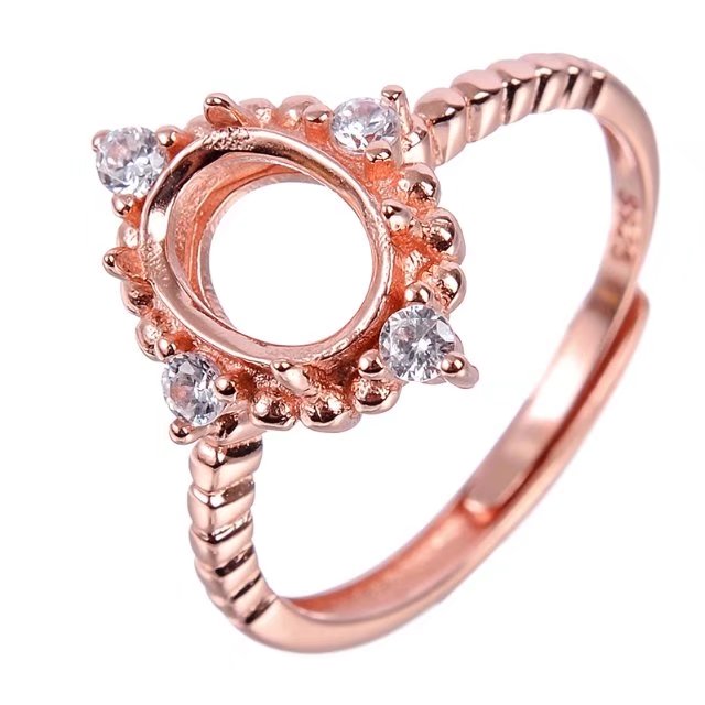 S925纯银活口戒指银空托多尺寸4*5 6*8mm可镶嵌翡翠水晶等银配件