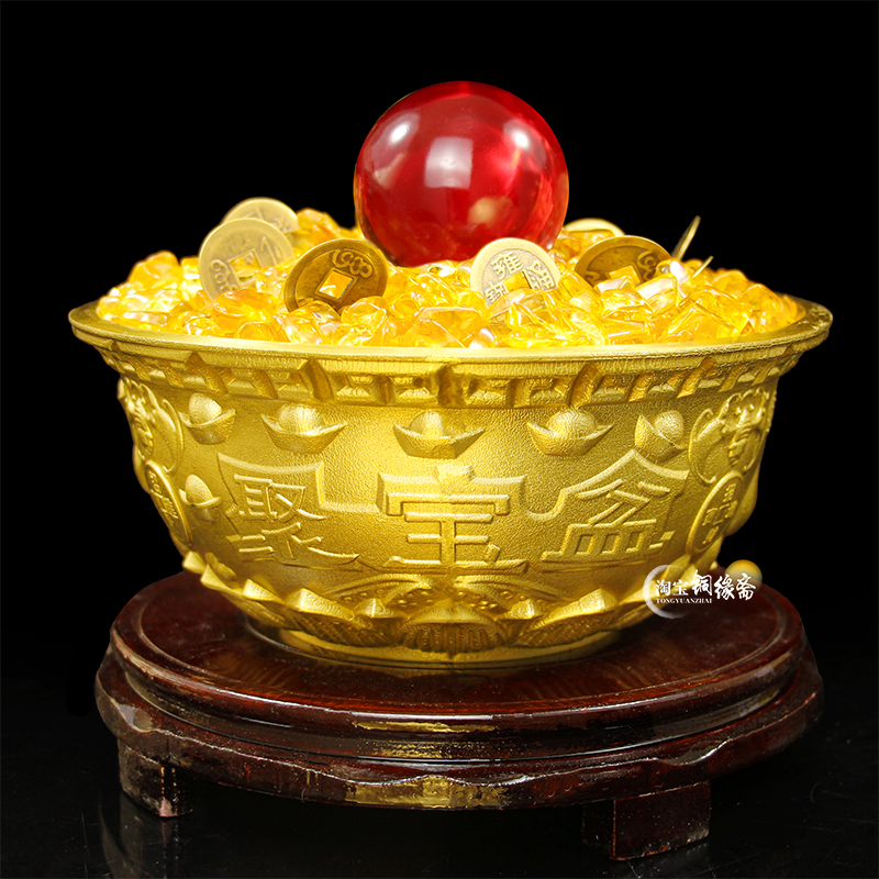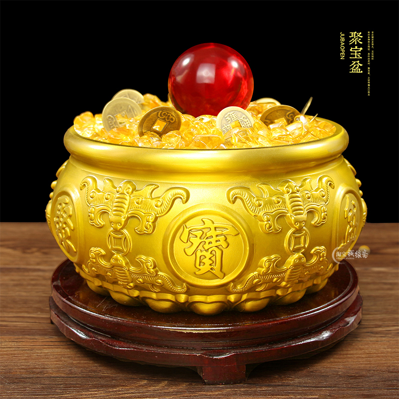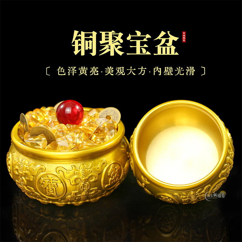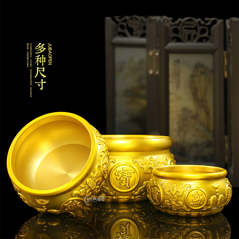 实心铜聚宝盆摆件铜盆铜碗聚宝盆米缸家居客厅店铺开业礼品八福盆