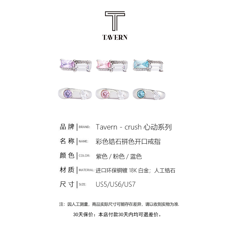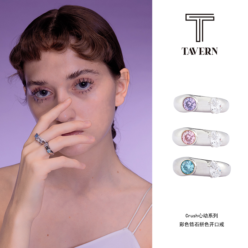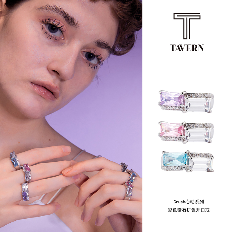Tavern彩色锆石拼色开口戒指叠带指环时尚个性小众设计感饰品首饰