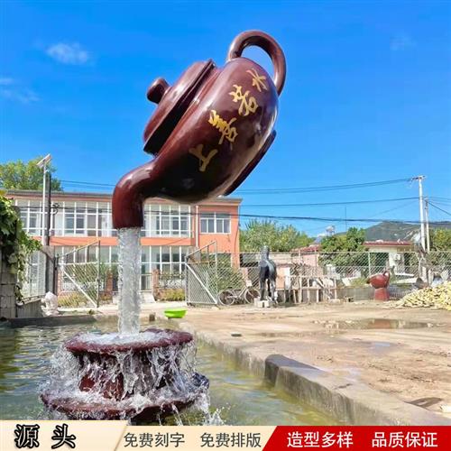 定制玻璃钢悬空流水天壶室内户外不锈钢喷泉大型水景茶壶雕塑摆件