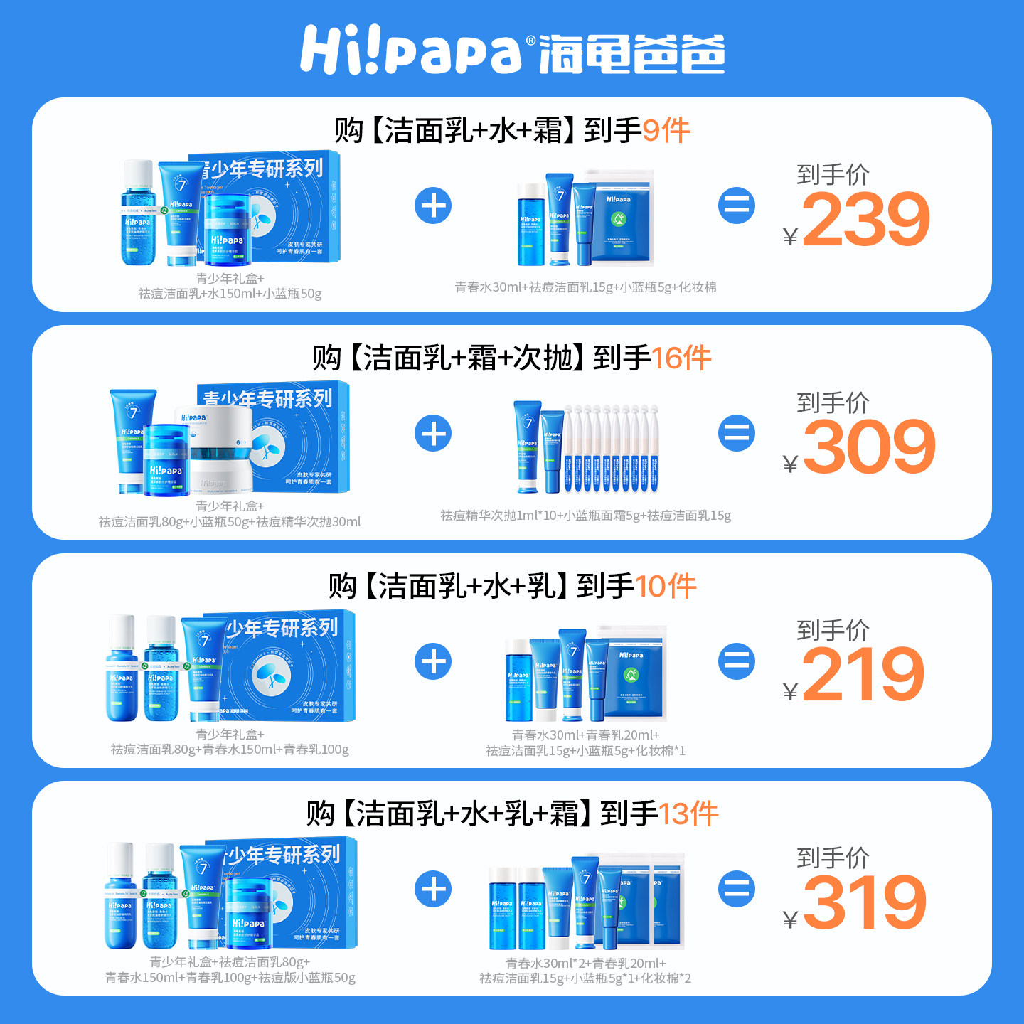 海龟爸爸青少年祛痘水乳护肤套装男青春期女孩控油专用儿童洗面奶