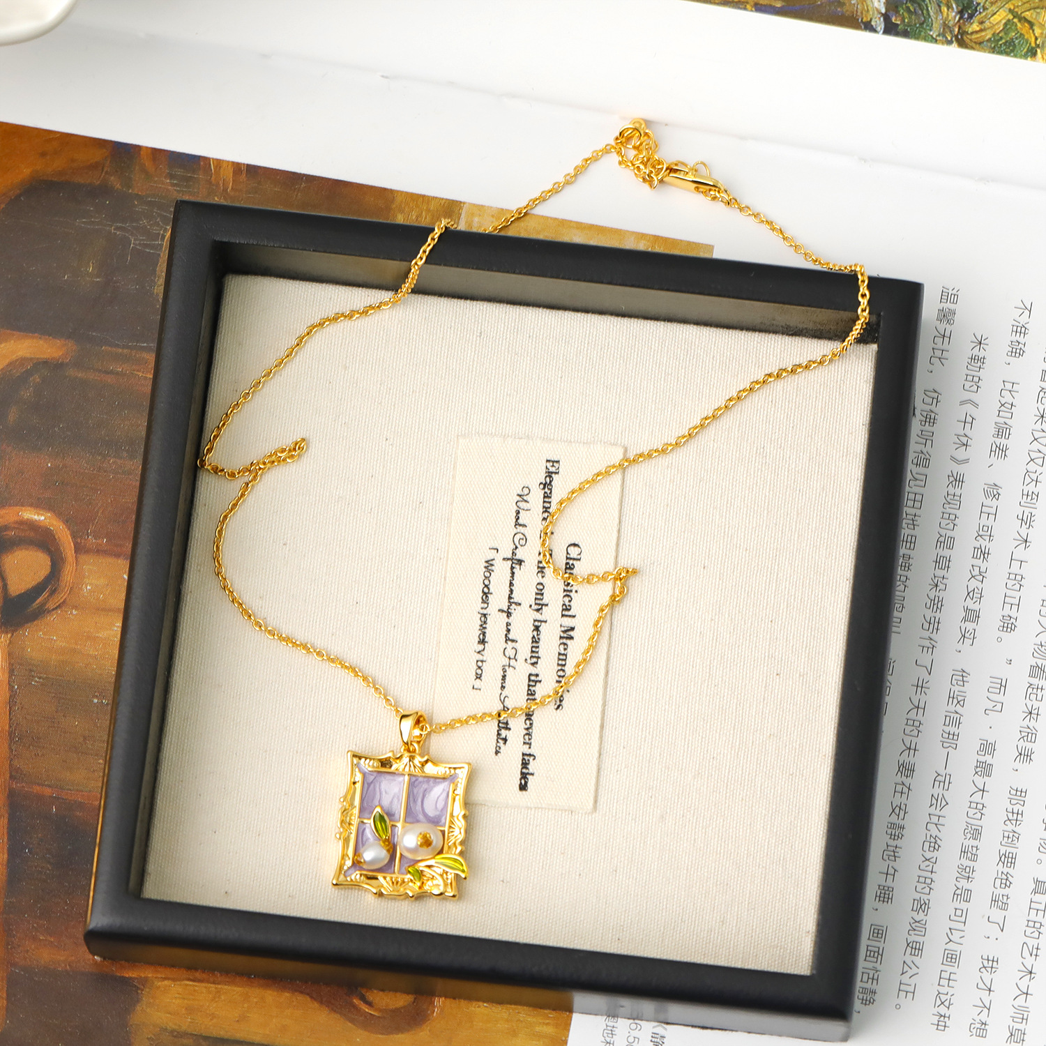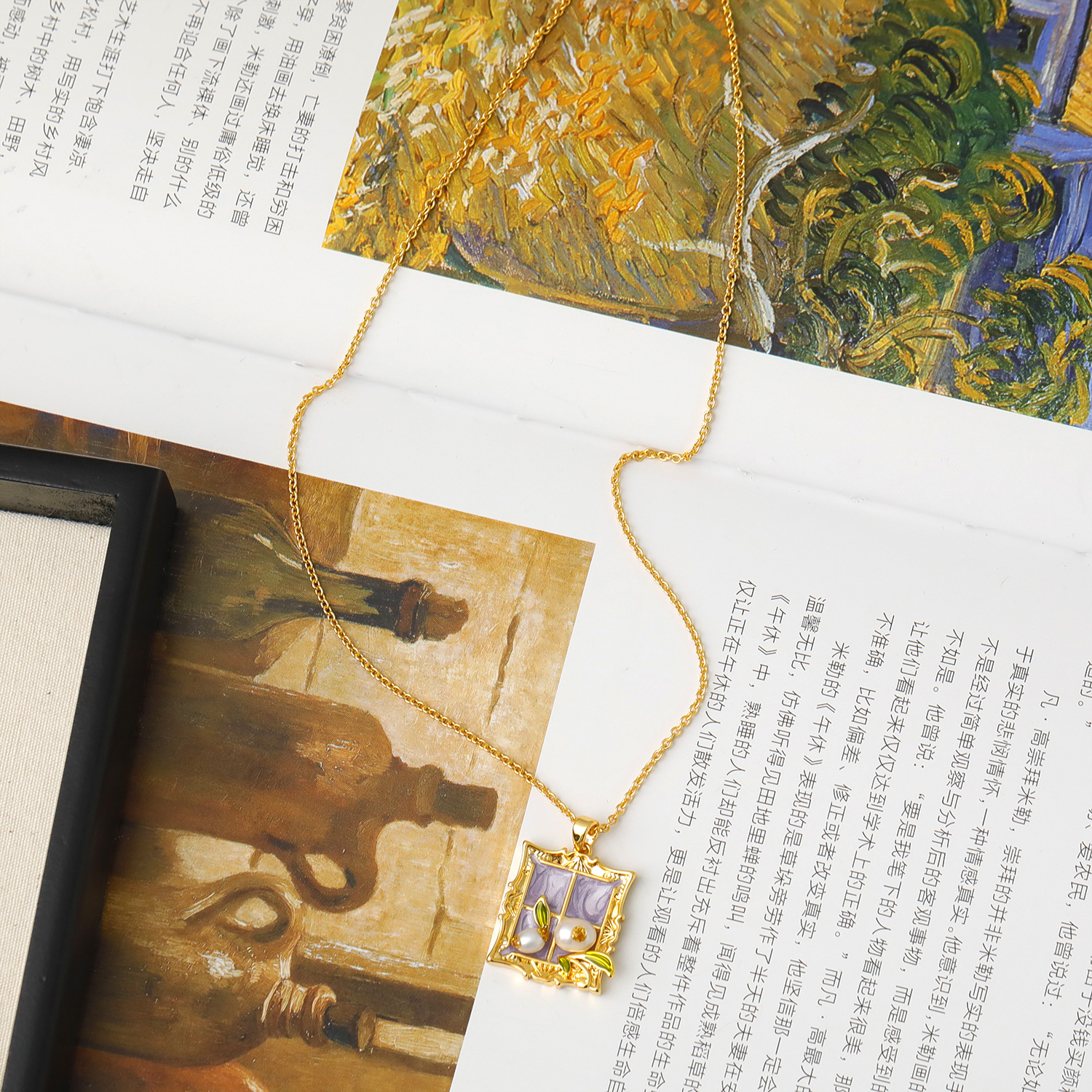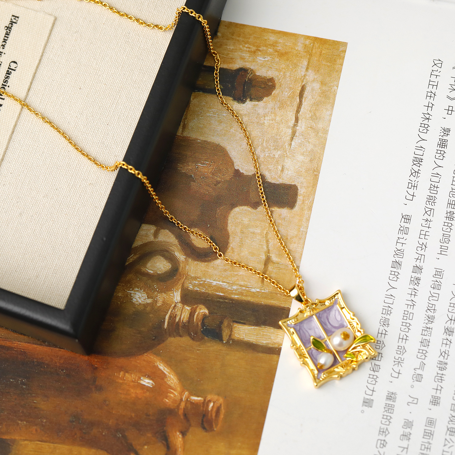 油画风时髦树叶滴油级感项链法式设计师淡水珍珠颈链新款锁骨链