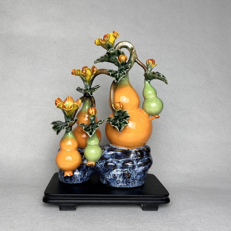 葫芦五福临门陶瓷摆件石湾公仔客厅高端装饰品