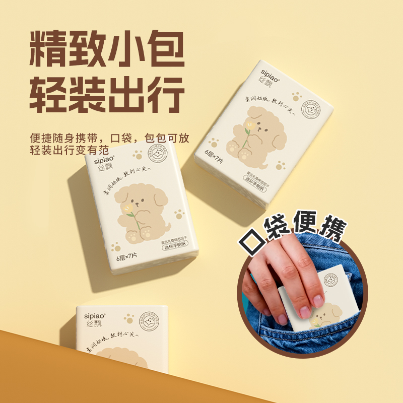 丝飘手帕纸便携式加厚可湿水柔韧柔韧亲肤无荧光剂家用清洁实惠装