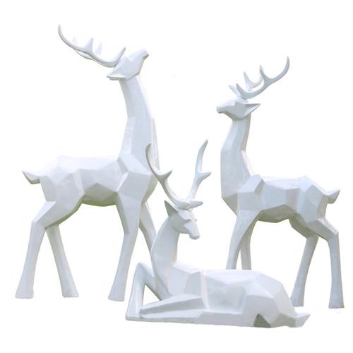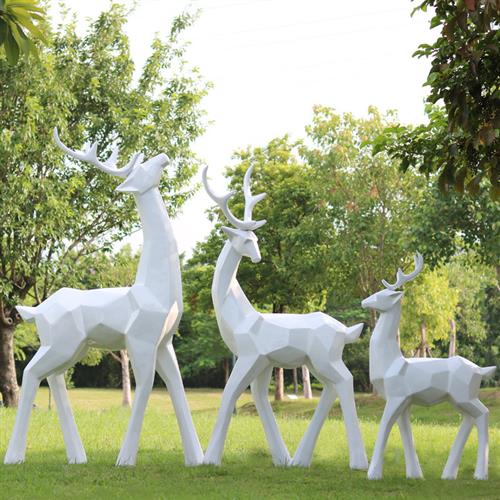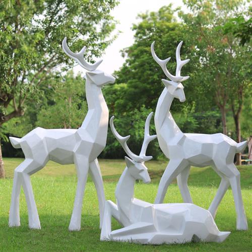 户外园林景观抽象玻璃钢几何梅花鹿雕塑售楼部草坪白鹿造景摆件