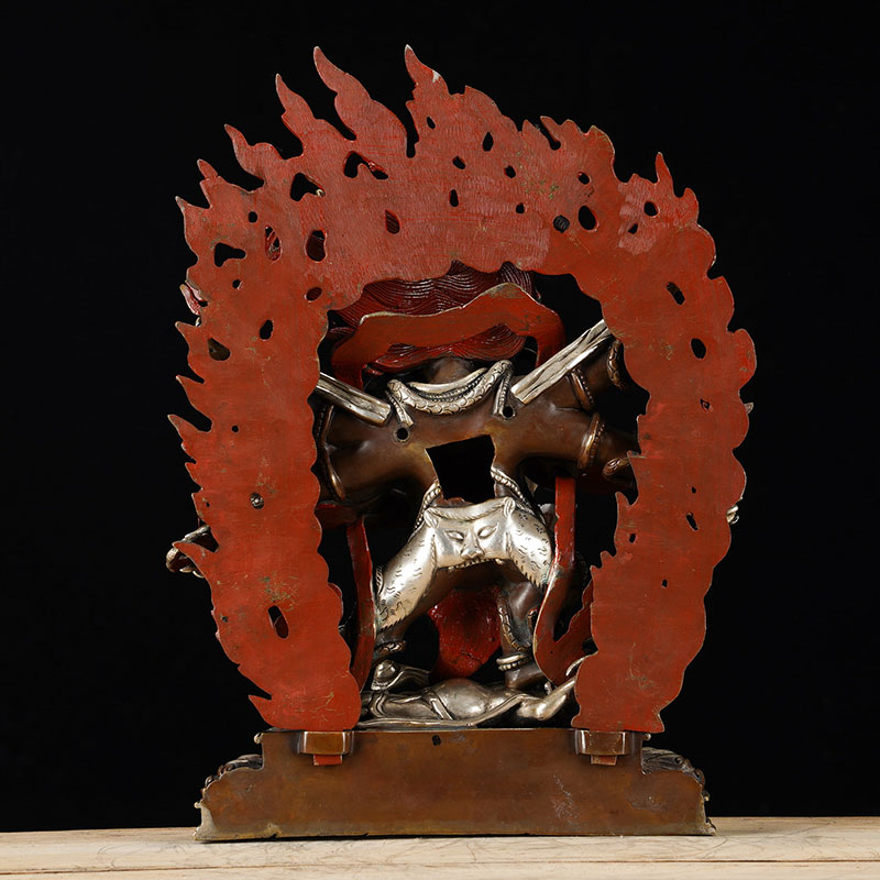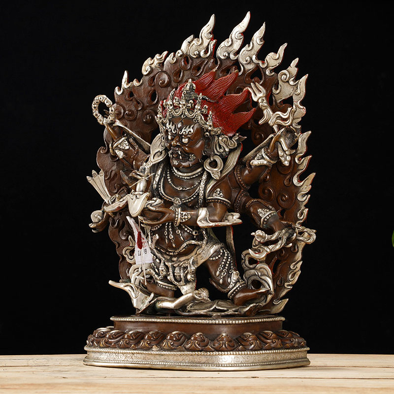 六臂玛哈嘎拉铜像尼泊尔10寸铜镀银大黑天现代家用用品摆件