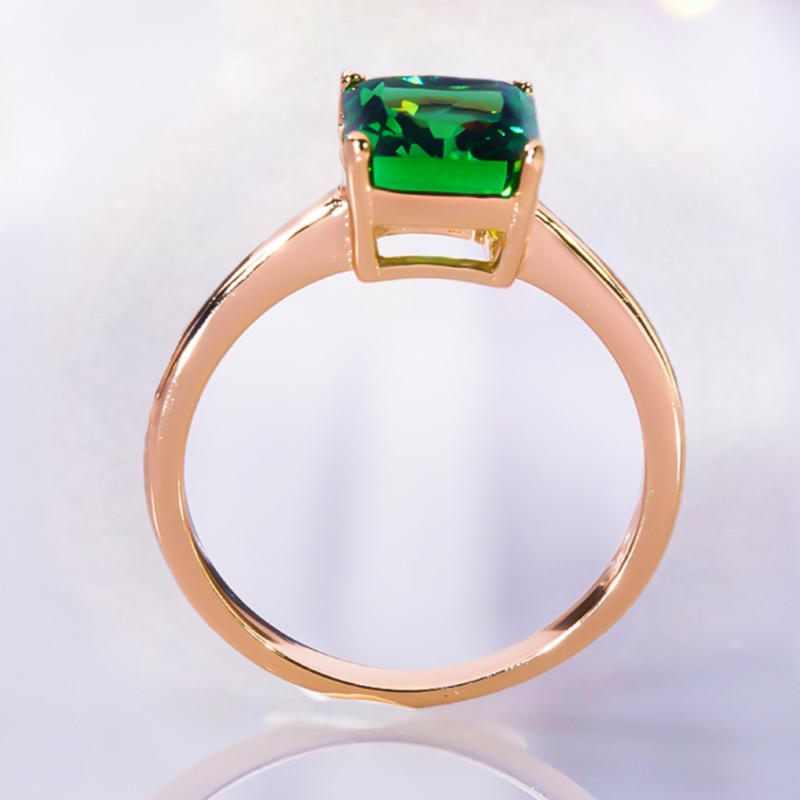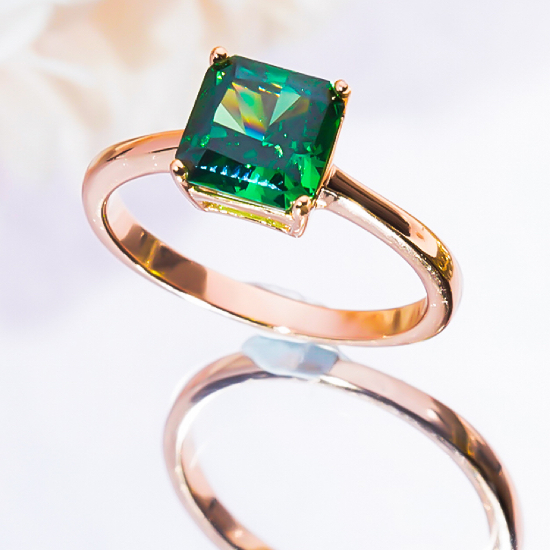 AU750进口莫桑石D色方钻祖母绿戒指18K镶嵌小方糖四爪简约小众女