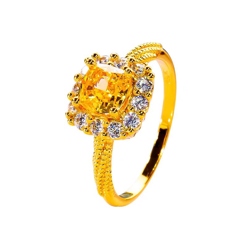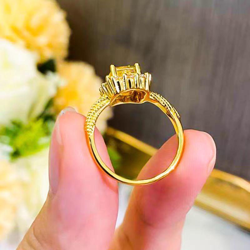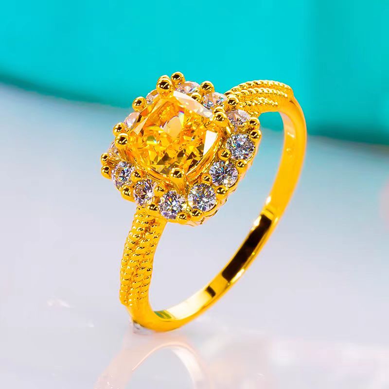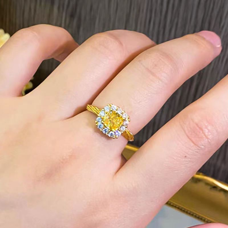 AU750纯18K黄金进口D色莫桑石黄钻小方糖戒指简约高级感百搭时尚