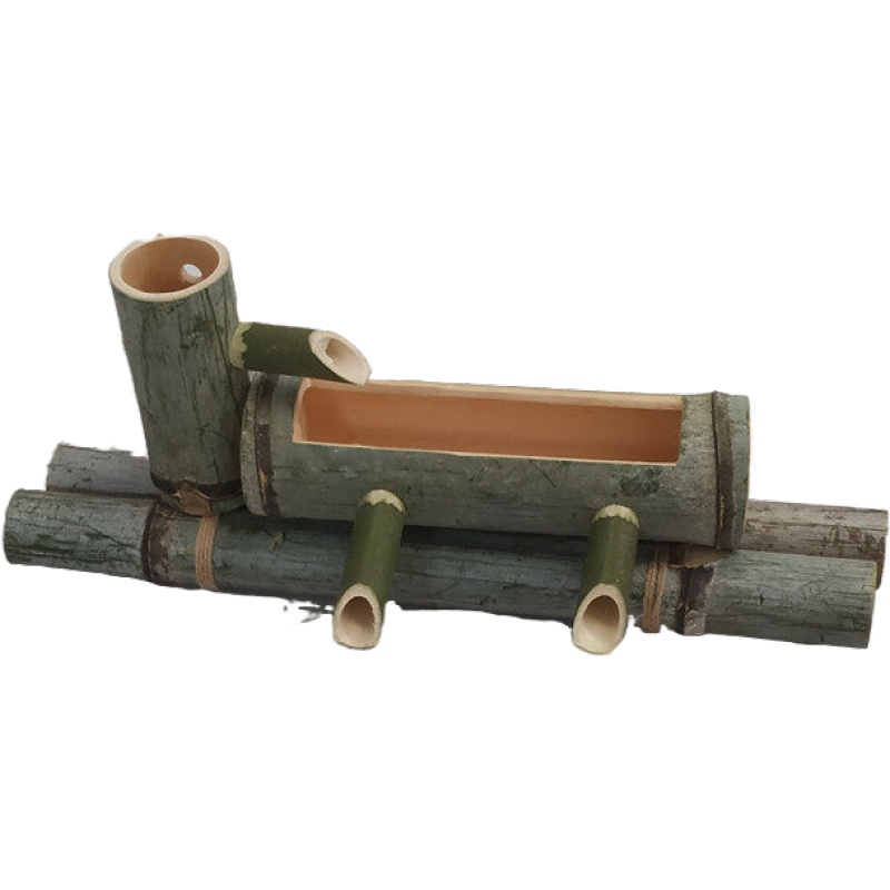 竹筒流水器鱼缸石槽竹子流水摆件喷楠H竹制景观装饰品水循环过滤