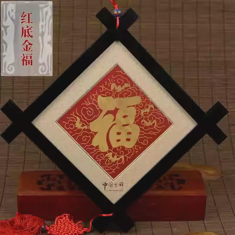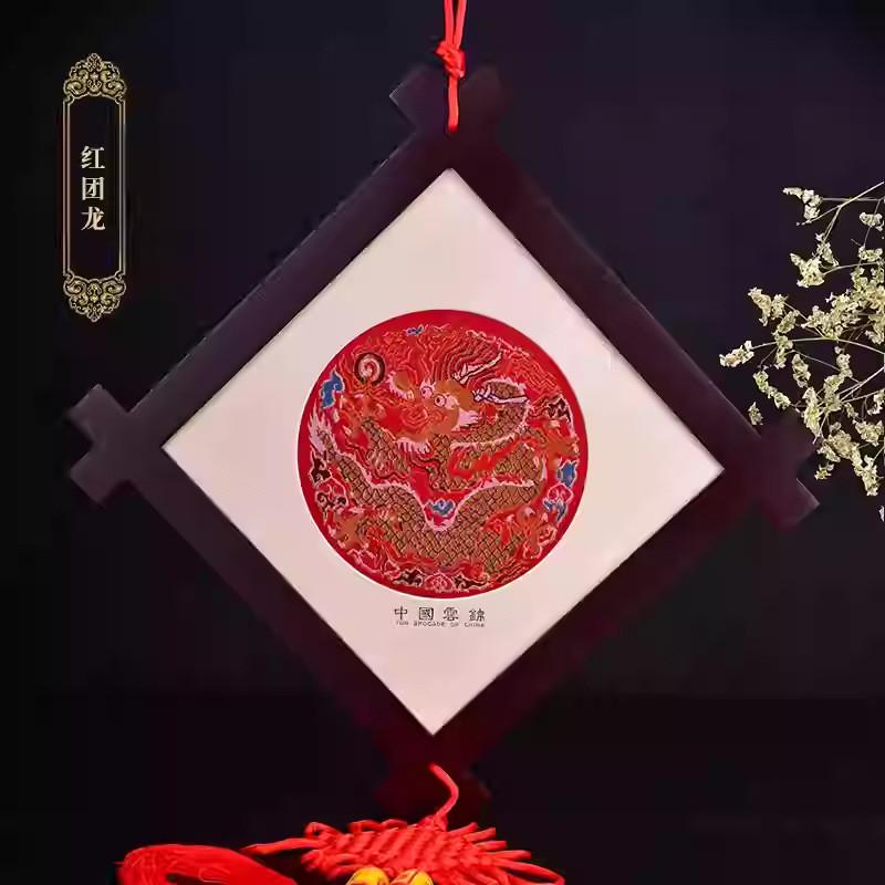 南京云锦井架摆件工艺品挂件红色福字家居礼品手工艺品木质挂饰