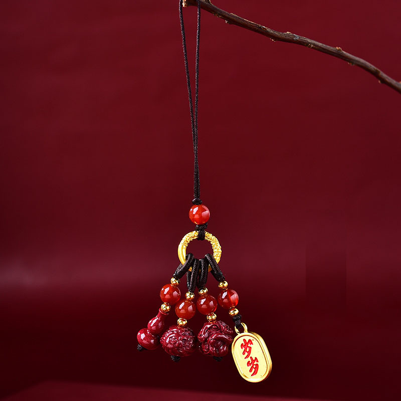 属龙2025年鹿鹤献桃吉贵宏朱砂吊坠手机链生肖龙朱砂手链钥匙扣