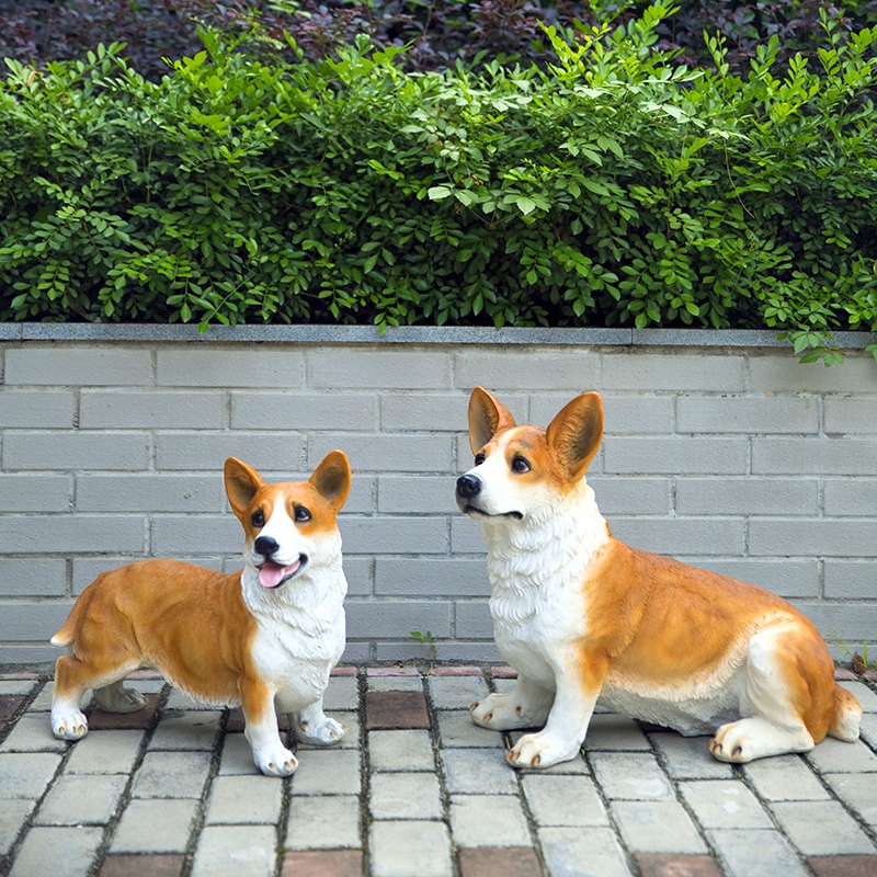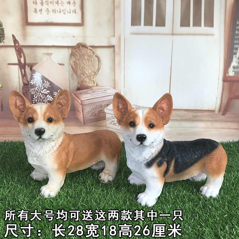 创意动物雕e塑工艺品大号仿真柯基狗狗摆件家居客厅庭院装饰品摆