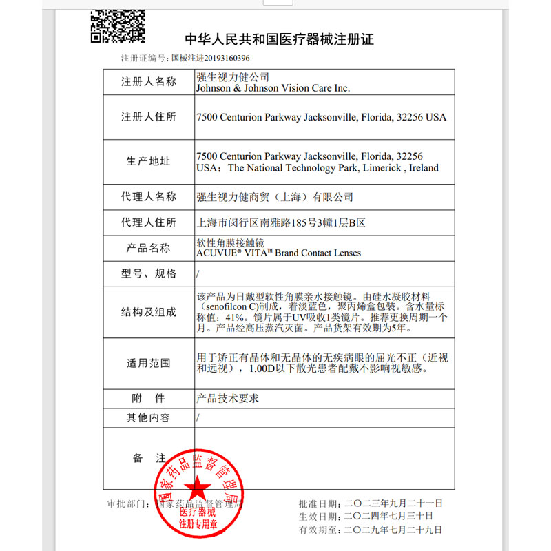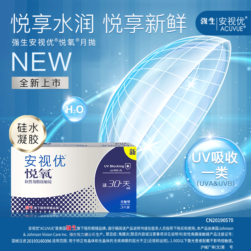 强生vita硅水凝胶悦氧隐形近视眼镜月抛盒3片*2盒正品