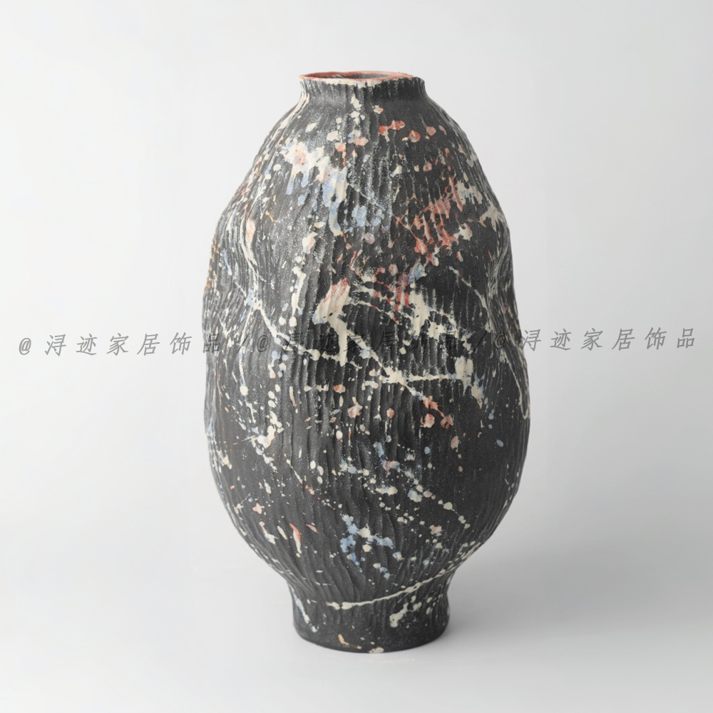 新中式侘寂风陶瓷花器摆件装饰品酒店民宿样板间手绘水墨艺术花瓶