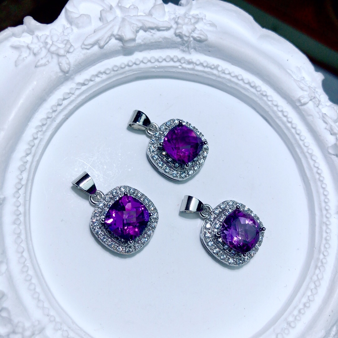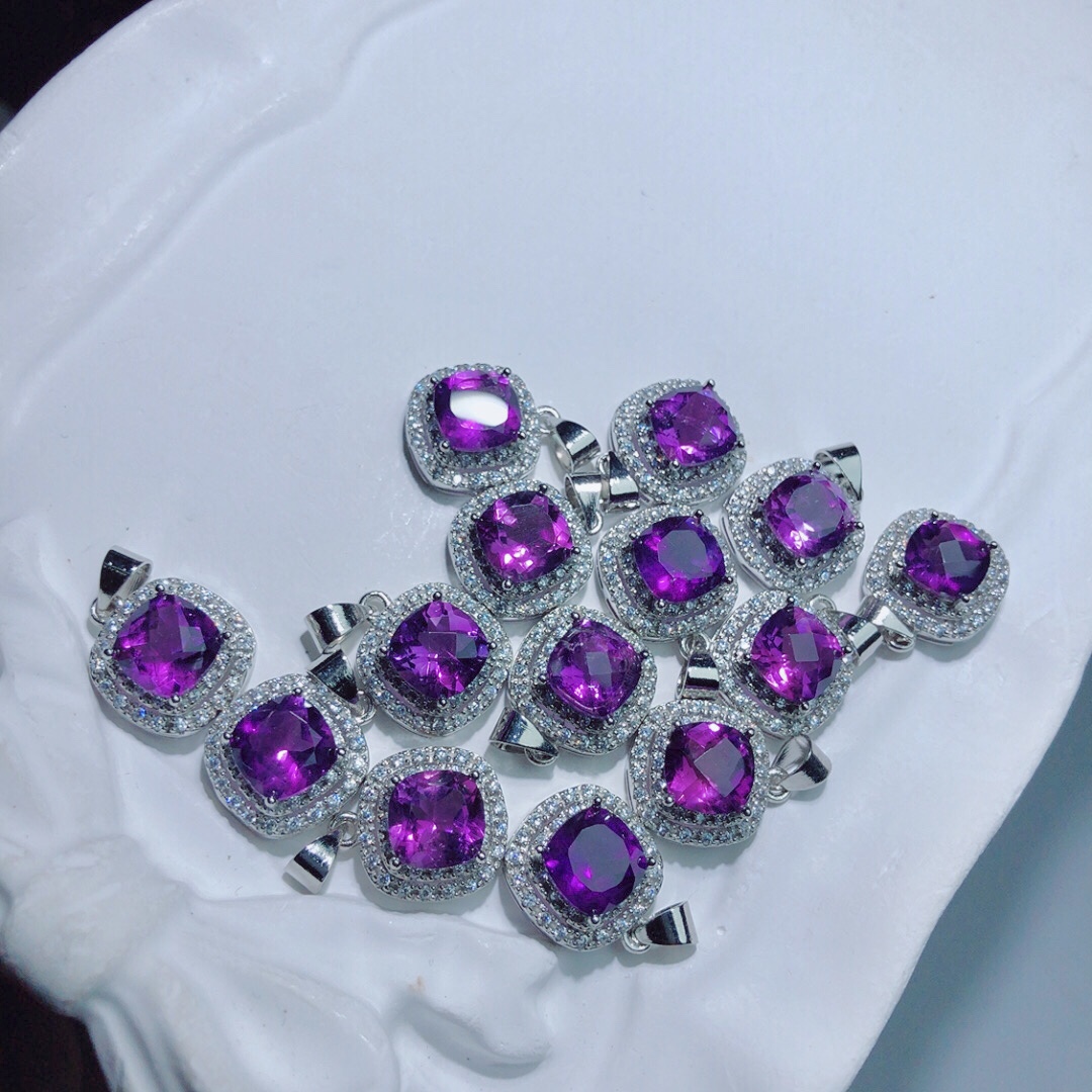 I534 天然紫水晶方糖公主方吊坠挂件13mm女款时尚简约百搭饰品