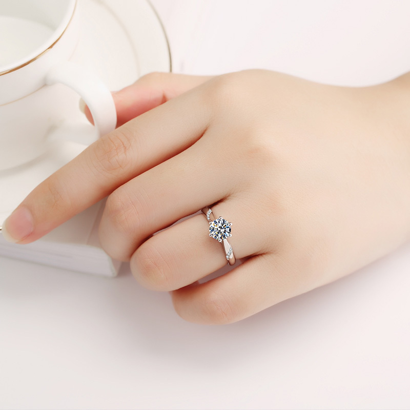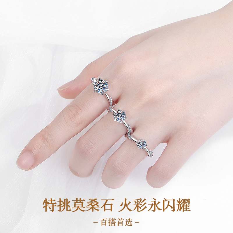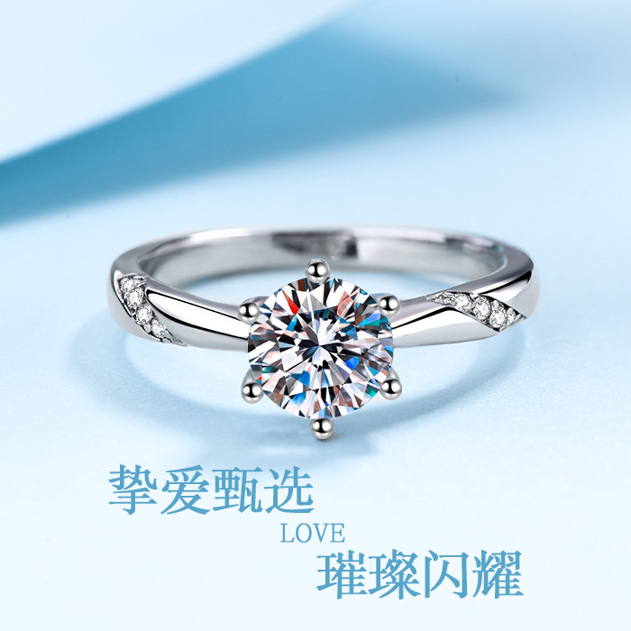 DR莫桑石钻戒1克拉六爪女戒闭口求婚结婚戒指定制生日礼物送女友