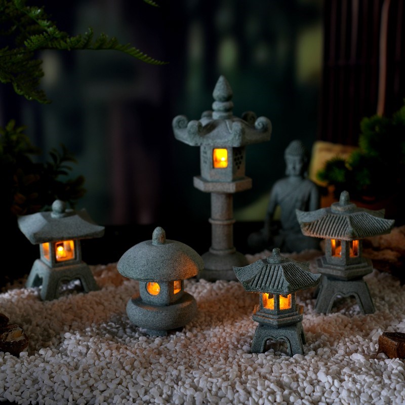 石灯笼小摆件桌面装饰小石亭子中式观景石灯微景观鱼缸造景亭子