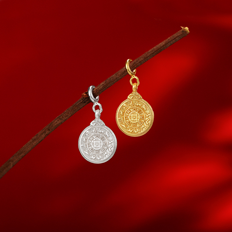 S925纯银小九宫牌腰牌吊坠纯银镀金吊坠文玩卡子藏式配饰diy计数