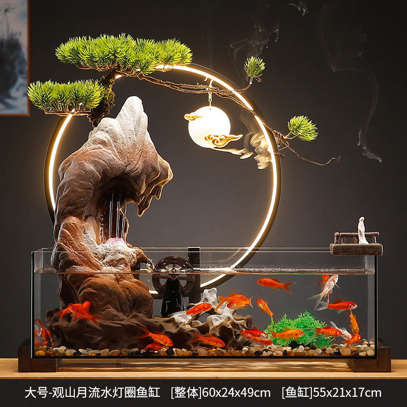 创意招财鱼缸假山流水生财喷泉摆件家居客厅开业装饰桌面乔迁礼品