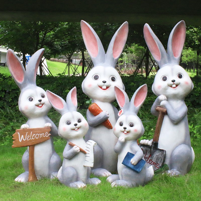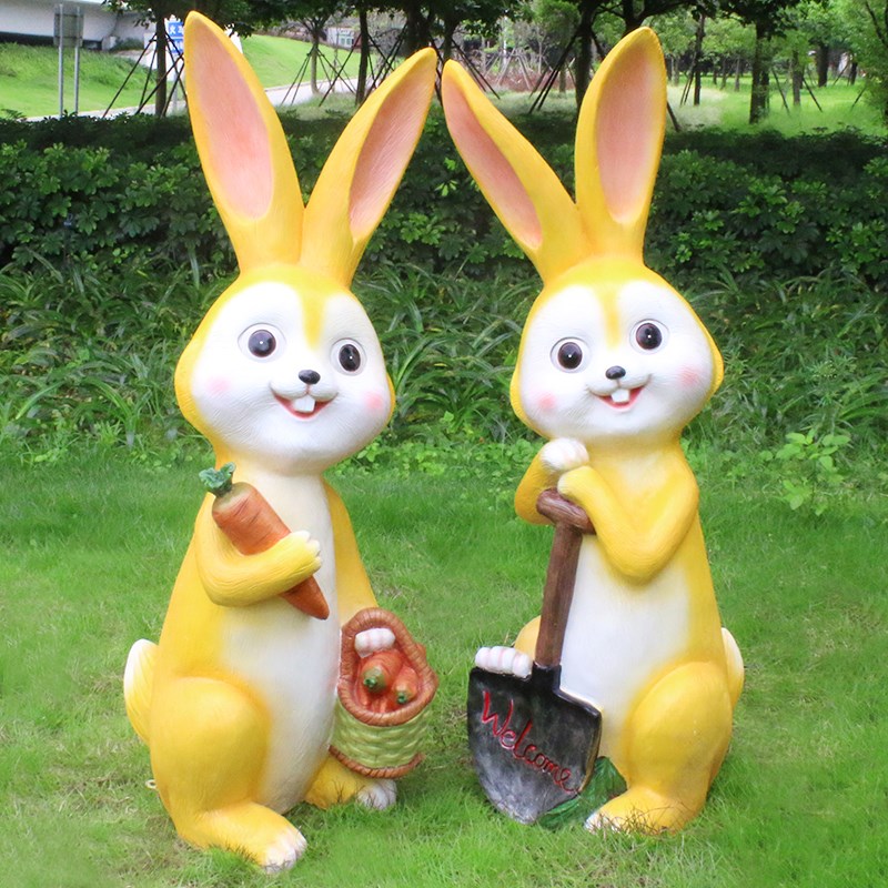 户外卡通兔子雕塑玻璃钢庭院花园C林景观草坪售楼处幼儿园装饰摆