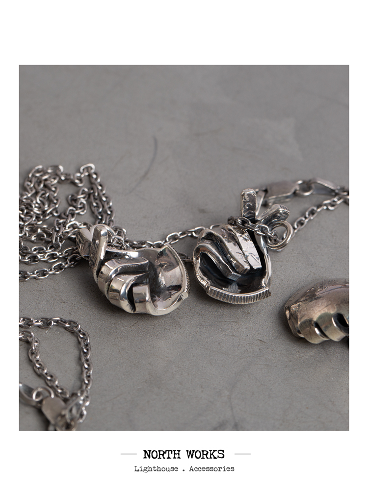 NORTH WORKS 殿堂级手造 古银币改制 趣味比心手势吊坠项链 N-641