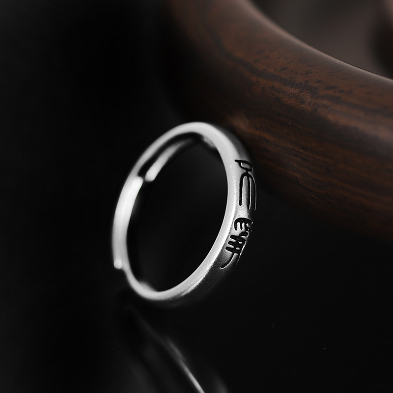 悦心S925纯银文艺个性知足喜乐平安不争慎独常在不辨开口戒指指环